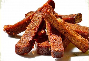 На линии гренок - готовый багет на аппарате нарезать кружочками .