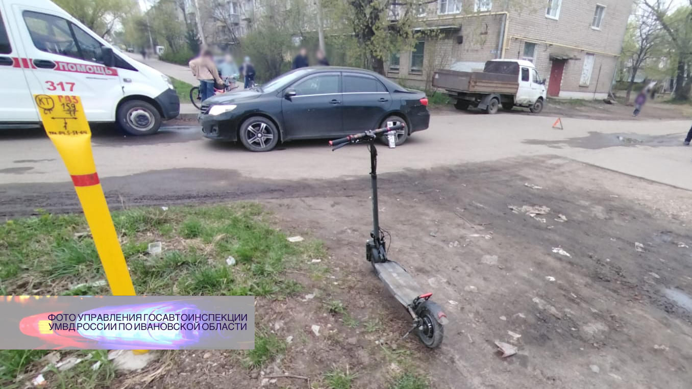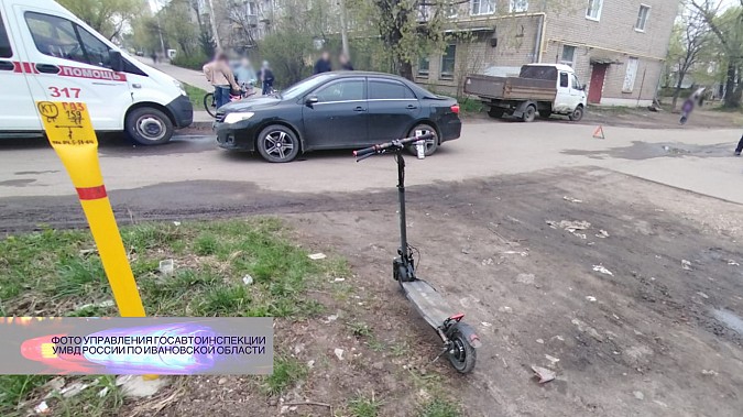 22 апреля в 17-50 в Кинешме на ул. Гагарина 32-летняя женщина, управляя автомобилем «Тойота Королла» при выезде с прилегающей территории совершила наезд на двигающийся по линии тротуара самокат «Куго» под управлением 13-летнего подростка, который после осмотра сотрудниками скорой медицинской помощи оставлен на месте ДТП.