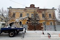 Напомним, что сначала территорию под балконом огородили сигнальными лентами. Позднее к вопросу подошли более серьезно — объявления об аварийном балконе стали более крупными и предлагали по возможности придерживаться противоположного тротуара, территорию под балконом дома купца Миндовского огородили цепями на треногах. Затем наступил очередной этап «благоустройства» — на пути пешеходов под балконом установили ажурную металлическую ширму.
